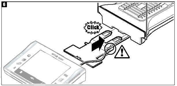 将显示操作终端安置在支座的中心位置上并靠着天平推送直到显示操作终端支座在前面略微使其向下转动。