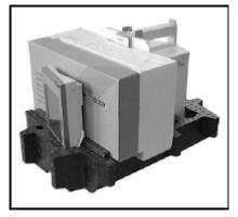 - 将显示操作终端放在天平上(见图示)并小心地将天平插入底部包装垫中。