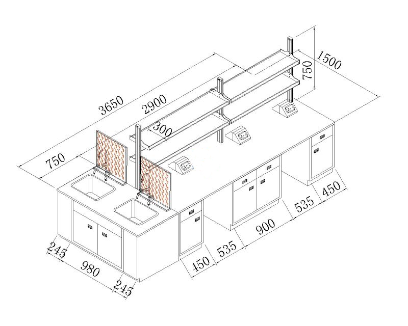 3、实验台主柜体(可分为:落地式柜体、吊装式柜体;可根据实际情况选择)
