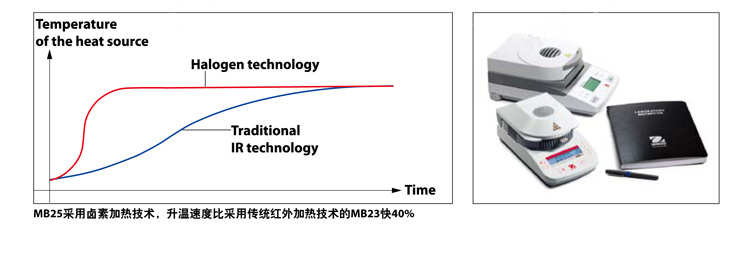 非玻璃红外加热单元可实现均匀加热,特别适合于食品、废水和陶瓷制品的水分测定。