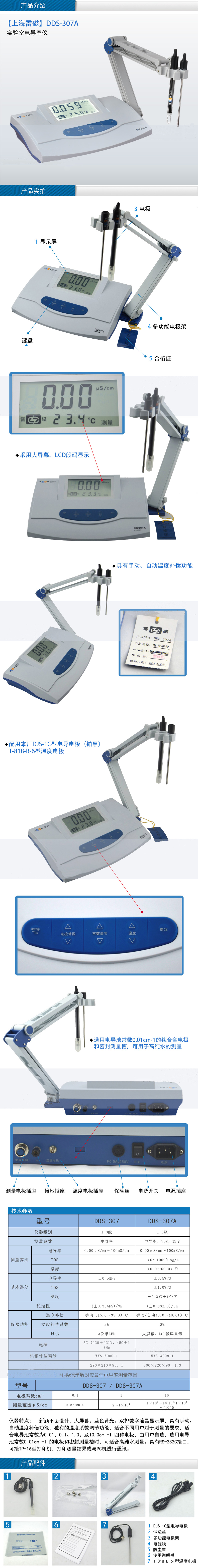 仪器采用大屏幕LCD段码式液晶; 可同时显示电导率/温度值或TDS/温度值,显示清晰; 具有电导电极常数补偿功能; 具有溶液的手动、自动温度补偿功能。