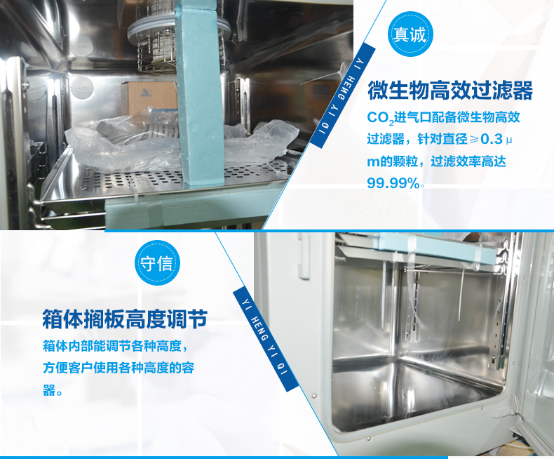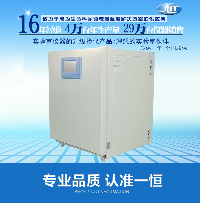 在实验过程中需要频繁打开箱门的,红外线传感器是最佳选择。一恒选用的进口红外线(IR)传感器对CO 2 浓度的变化十分敏感,并且不受培养箱内部其它条件影响,测量精度高,避免了传统的热导探头在监测CO 2 浓度时,箱内温度、湿度对其的影响。如开门30秒后关门,可以在≤3分钟内恢复到5%的CO 2 设定浓度,即使在多人使用,需频繁开门、关门的情况下,仍能保持箱内CO 2 浓度快速稳定和均匀。