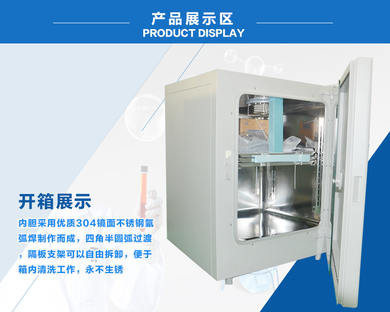 ● 可以对内室(包括温度传感器、二氧化碳浓度传感器、风扇、隔板和支架在内)进行彻底的高温湿热灭菌,彻底消除细菌、霉菌、支原体等各类微生物对于细胞培养所造成的微生物污染,为用户提供一个安全的实验环境。