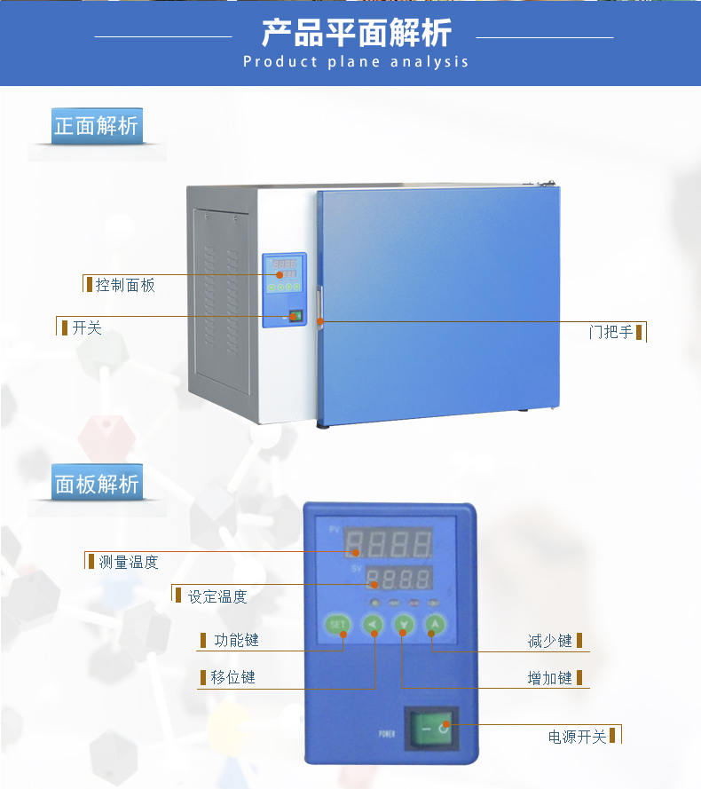 ● 镜面不锈钢内胆,电热膜加热方式,加热速度快,使箱内均匀加热。
