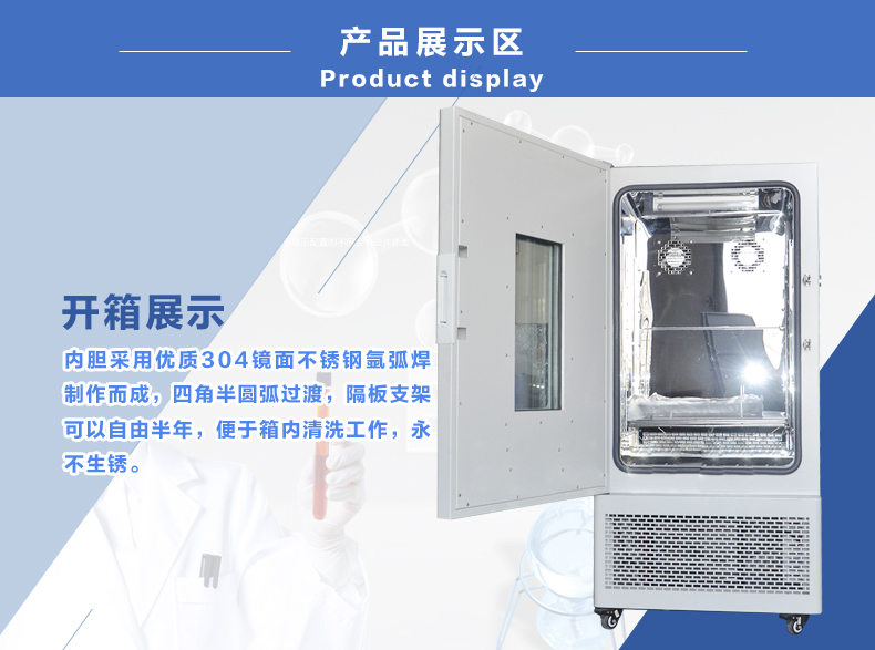 ● 采用镜面不锈钢内胆,四角半圆弧过渡,搁板支架可以自由装卸,便于工作室的清洗工作。