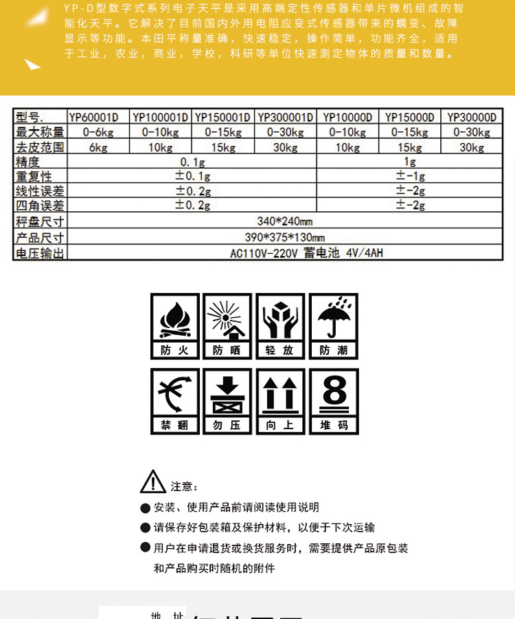 > 金诺YP-D系列超大称量精密电子天平