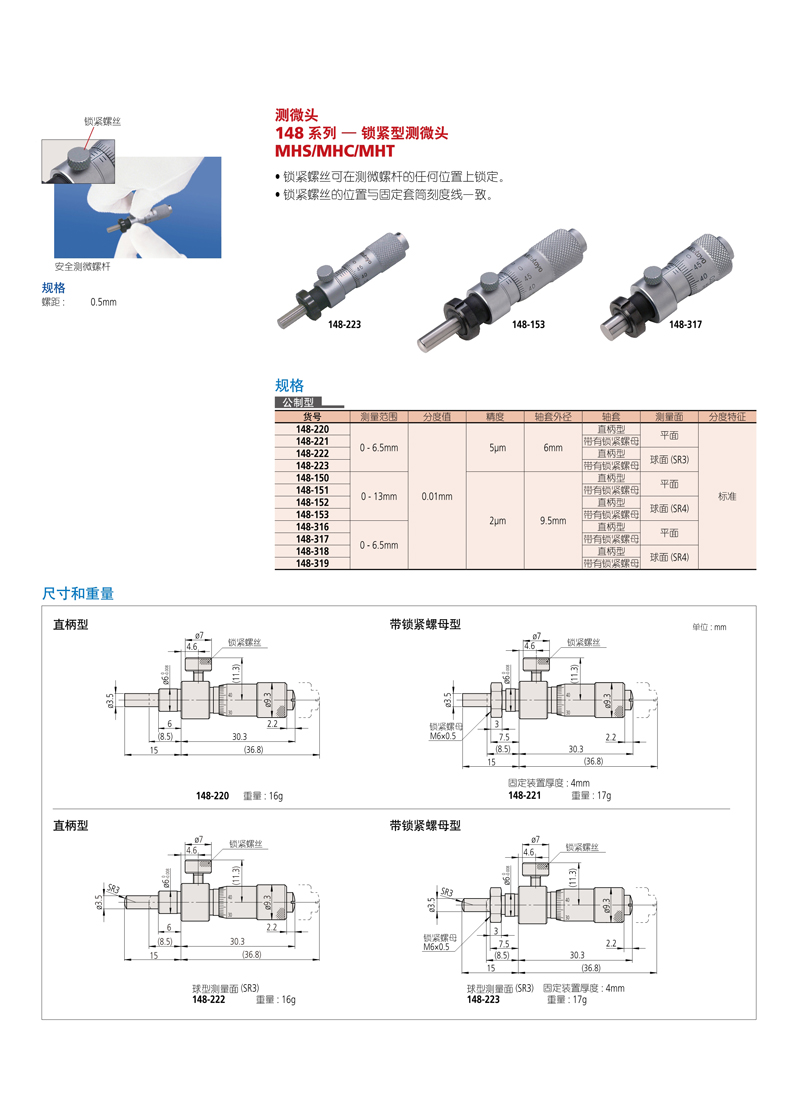 下一页:日本Mitutoyo三丰测微头148 系列 — 大直径微分筒易于读数MHC-6.5/13