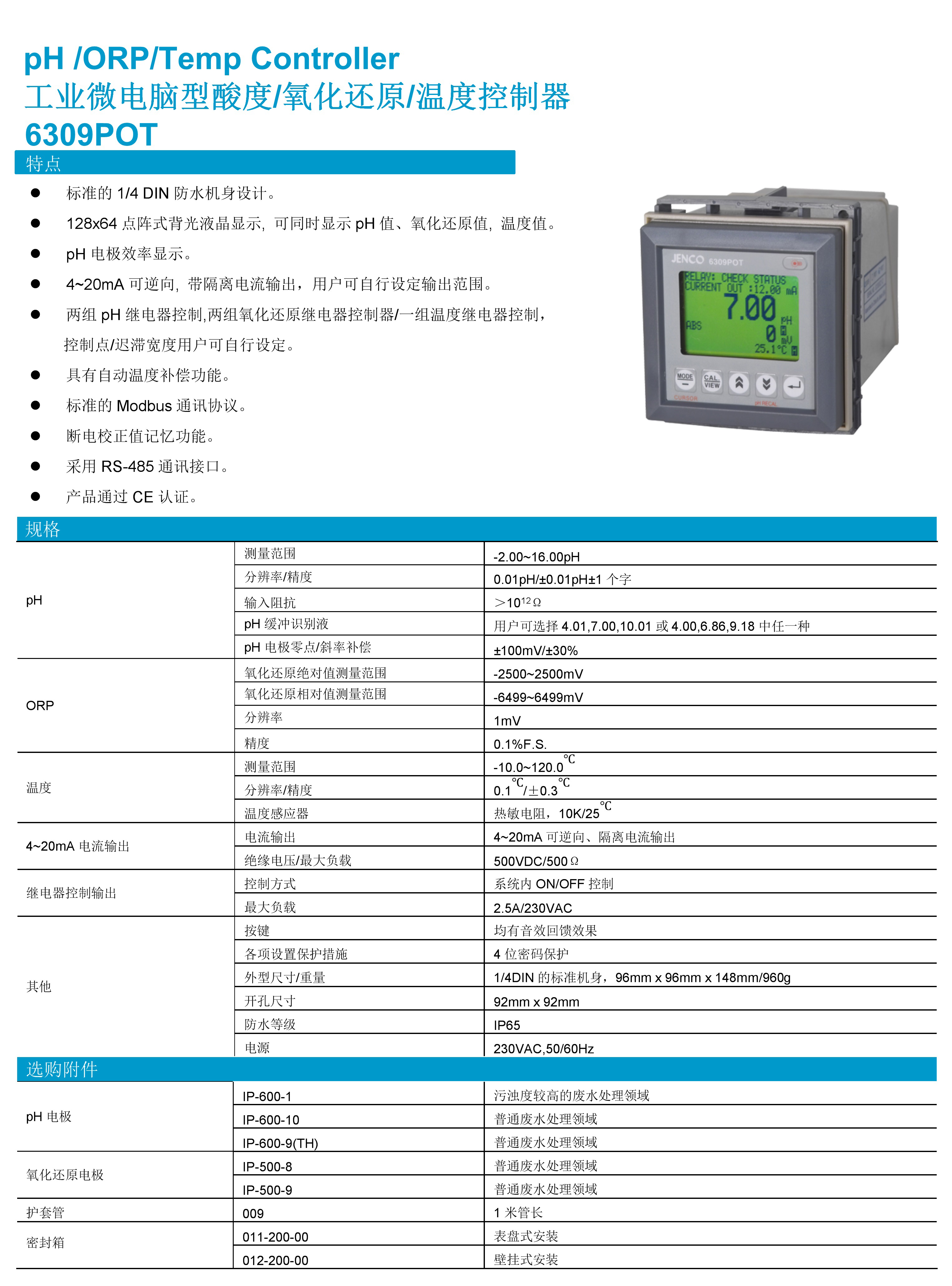 上一页:pH/ORP/Temp. Controller 工业微电脑型pH/氧化还原电位/温度控制器 6313