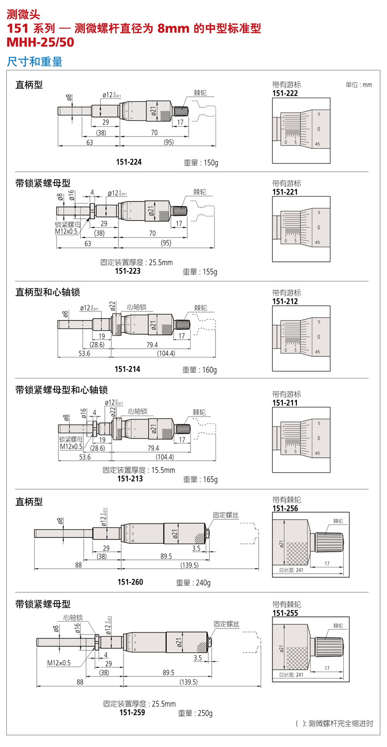 上一页:日本Mitutoyo三丰测微头151系列 — 测微螺杆直径为 8mm 的中型标准型MHH-25/50