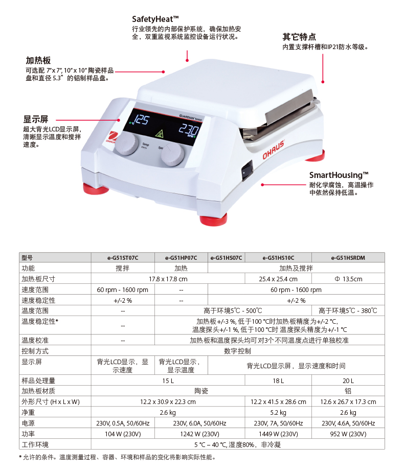 | 功能 | 加热 | 加热和搅拌 | 加热和搅拌 | 加热和搅拌 | 搅拌 |