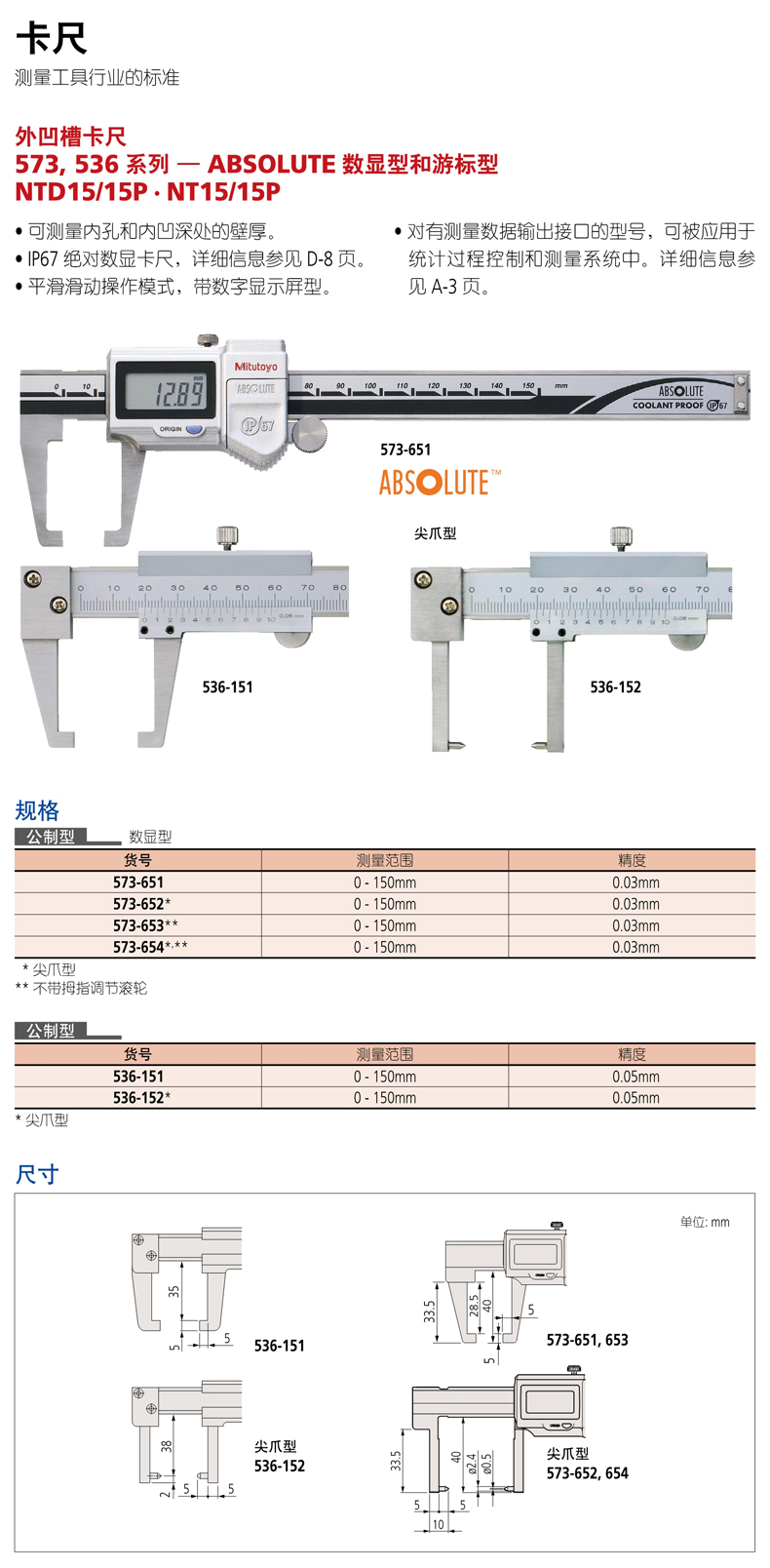 下一页:日本Mitutoyo三丰偏置卡尺573, 536系列—ABSOLUTE 数显型和游标型NTD10·NT10