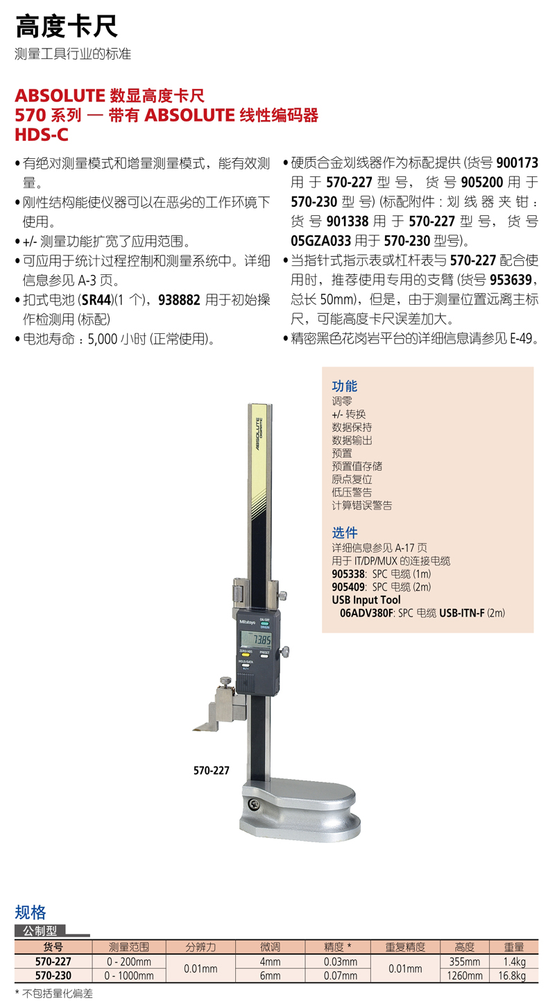 下一页:日本Mitutoyo三丰ABSOLUTE数显高度卡尺570系列—带有ABSOLUTE线性编码器HDS-HC
