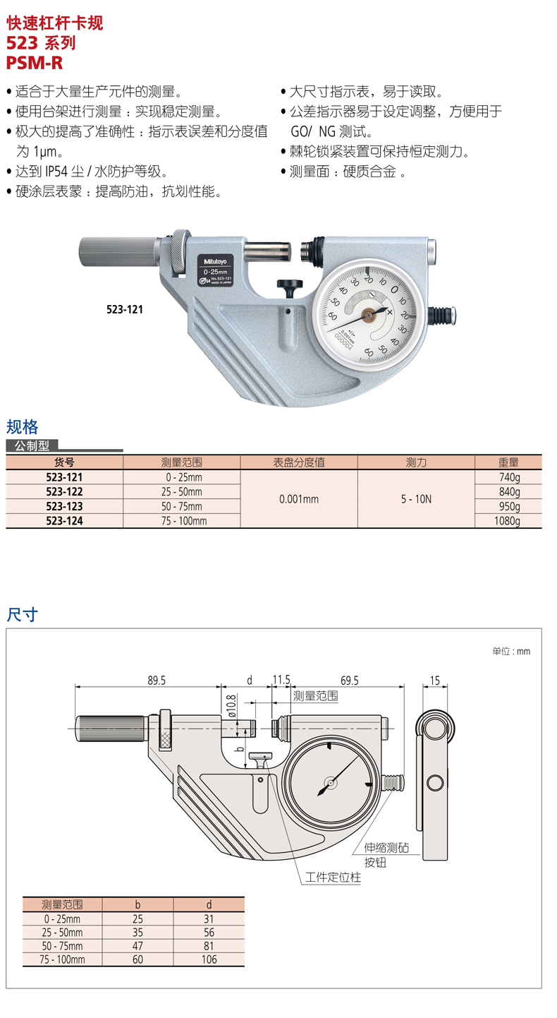 下一页:日本mitutoyo三丰快速杠杆卡规523系列PSM-S