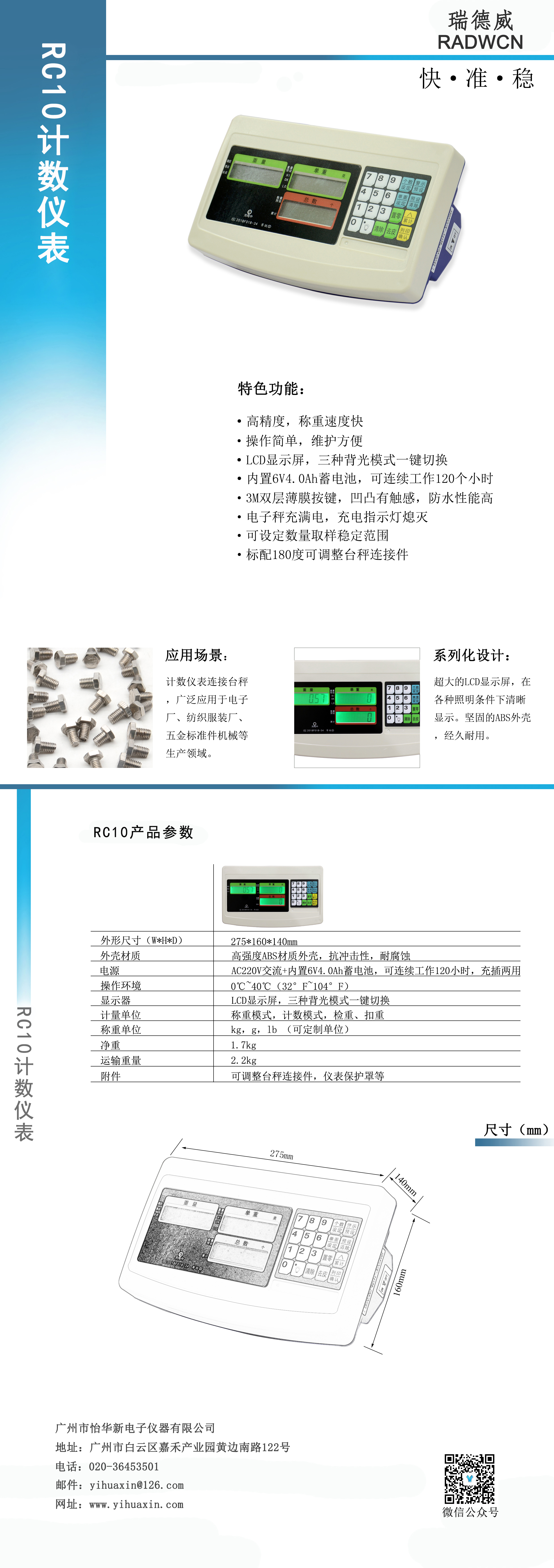 RC10计数仪表,适合不同台面尺寸不同精度的台秤,多选择,满足客户多种需求,20个功能键分列排开,操作简单,维护方便