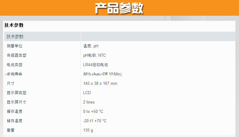 酸碱度pH值和温度值同时显示在背光显示屏上,只需一眼就可同时记录两组数据