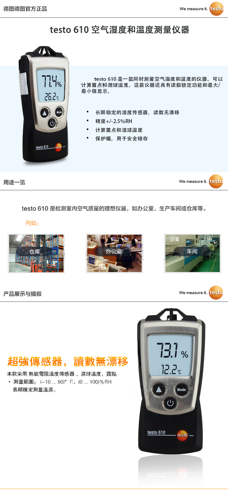 可靠的测量技术,简便的操作:testo 610便携式温湿度仪