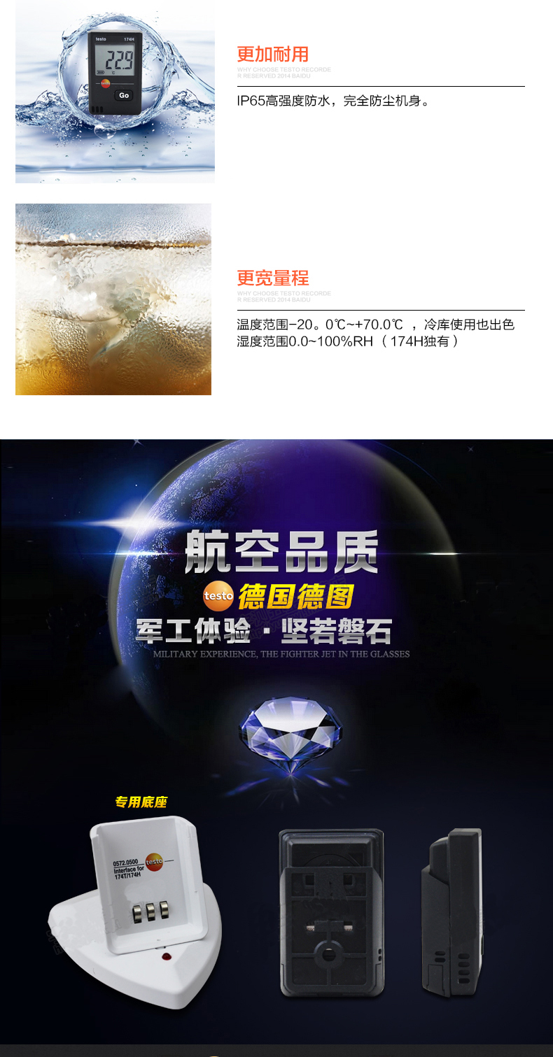 testo 174H迷你温湿度记录仪套装,包括有编辑和读取迷你温湿度记录仪USB数据底座,墙面安装支架,电池(2 x CR 2032 锂电池)及出厂报告。