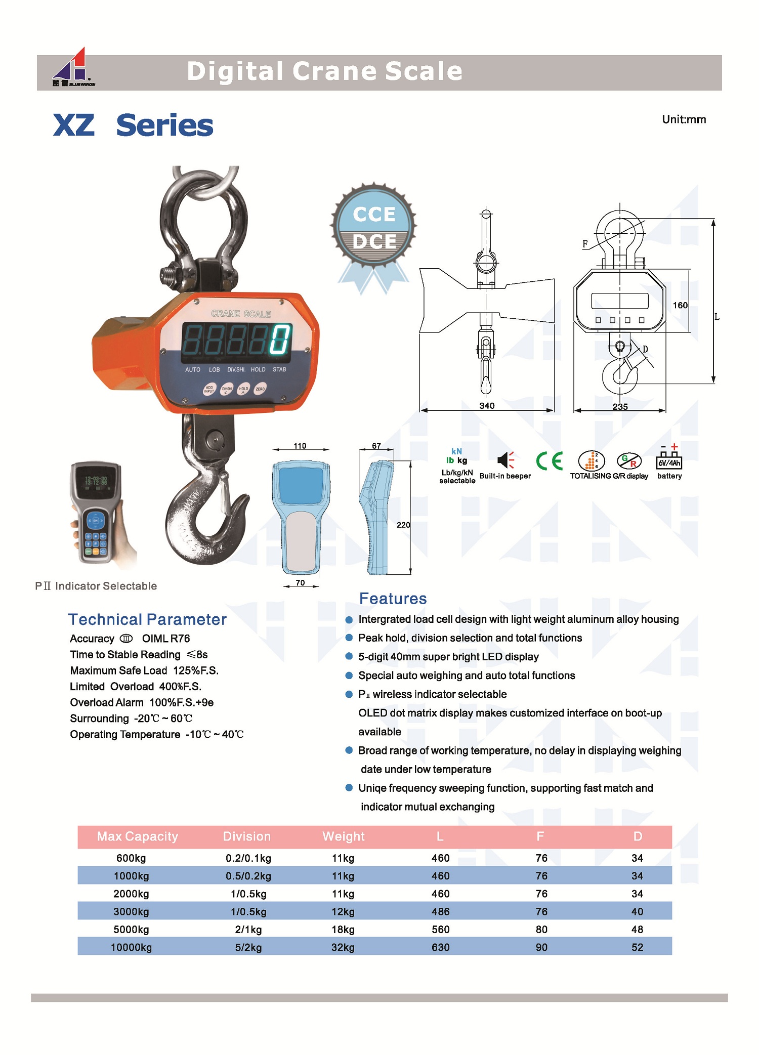 CCE(g)PⅡ is a direct visual crane scale composed by super bright green LED display and hand-held PII weighing terminal device. It successfully combines the advantages of visible & convenient crane scale to the multi-functional wireless crane scale. This newly developed model is a better choice to customers for its excellent quality and good price.