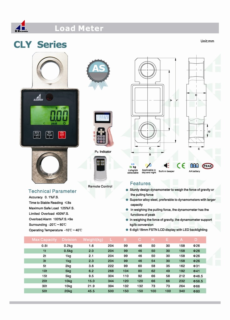 In weighing the pulling force, the dynamometer has the functions of peak value hold, overload alarm and stable weight indication.