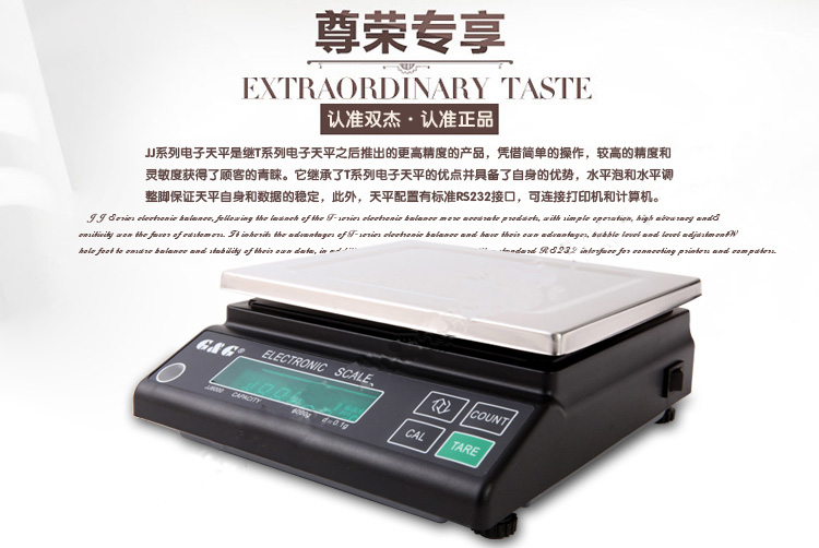 3种称重单位:克,克拉,金衡盎司,计数功能(取样数:1/10/20/50/100),全称量去皮