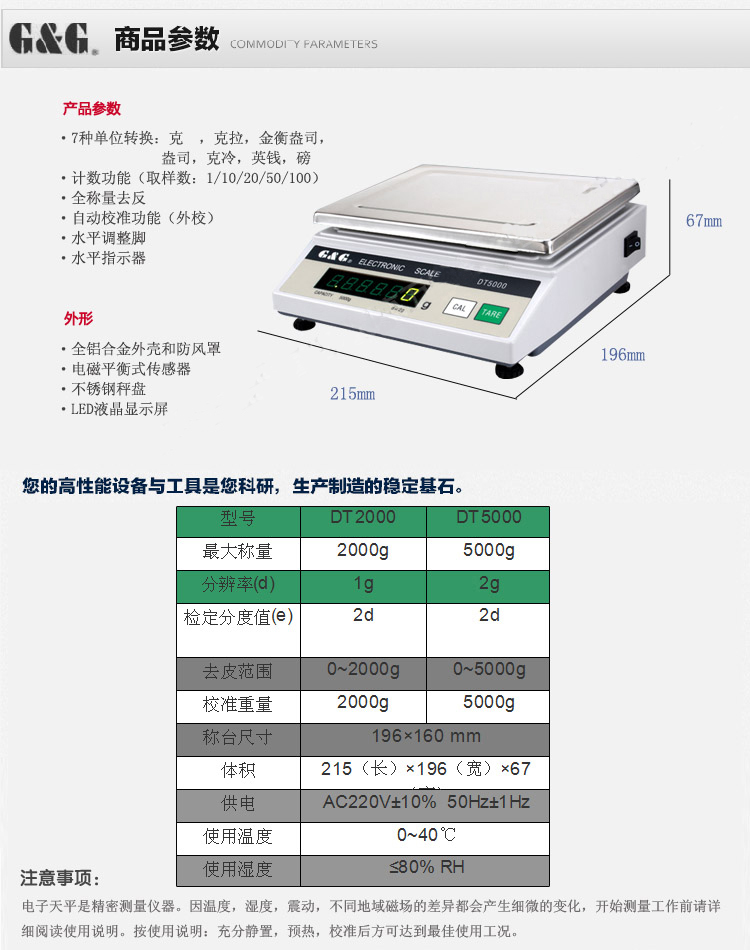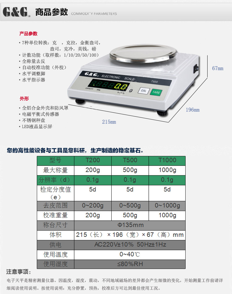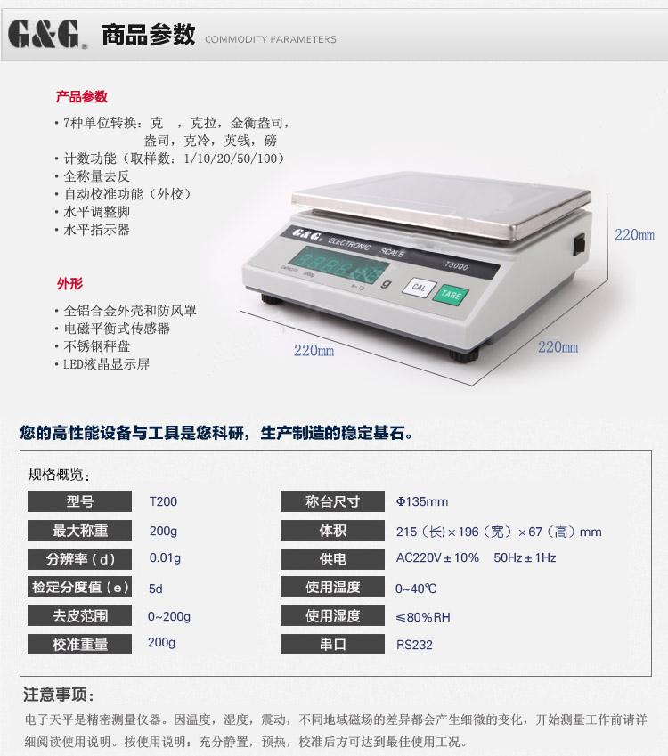 自动校准功能,全称量去皮,坚固的铝合金底座,塑料外壳,简单易清理