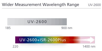通过使用选配积分球,UV-2600的分析波长范围可扩大至1400 nm近红外区域。