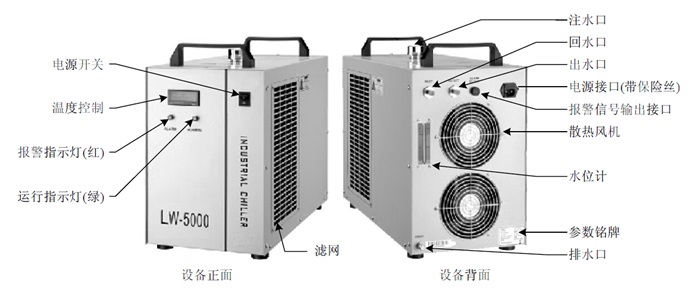 2)LW-5000H:可应用于冷却单个5KW的主轴或焊接设备;