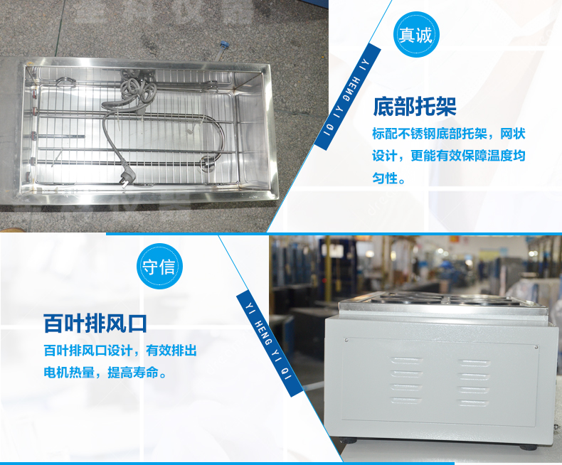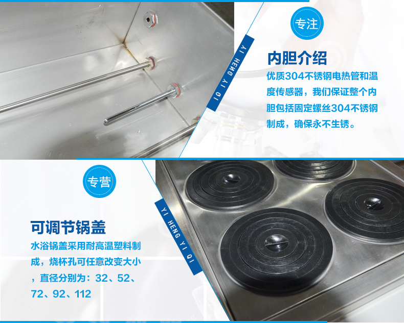 ● 采用不锈钢内胆、烧杯孔可任意改变大小。