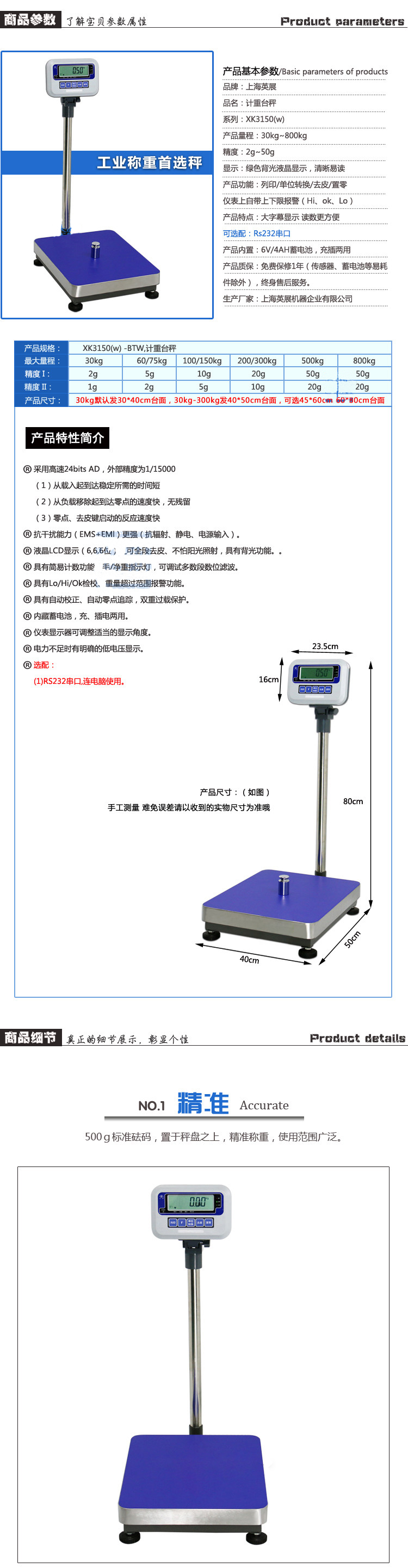 > 上海英展XK3150(w)计重台秤800kg