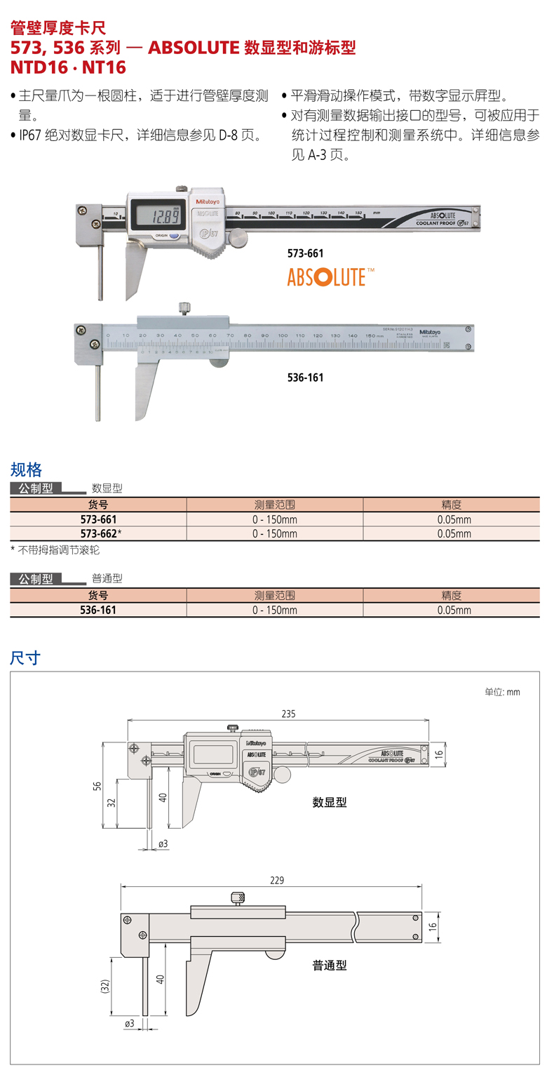 上一页:日本Mitutoyo三丰尖爪卡尺573,536系列—ABSOLUTE 数显型和游标型NTD12/12P·NT12