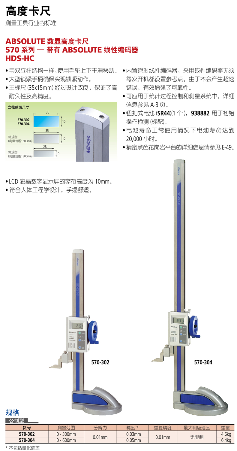 上一页:日本Mitutoyo三丰ABSOLUTE 数显高度卡尺570系列—带有ABSOLUTE 线性编码器HDS-C