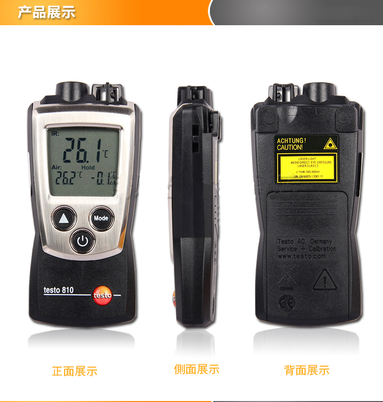 testo 810红外测温仪,内置NTC热敏电阻温度传感器,包括保护帽,保护套,电池和出厂报告。